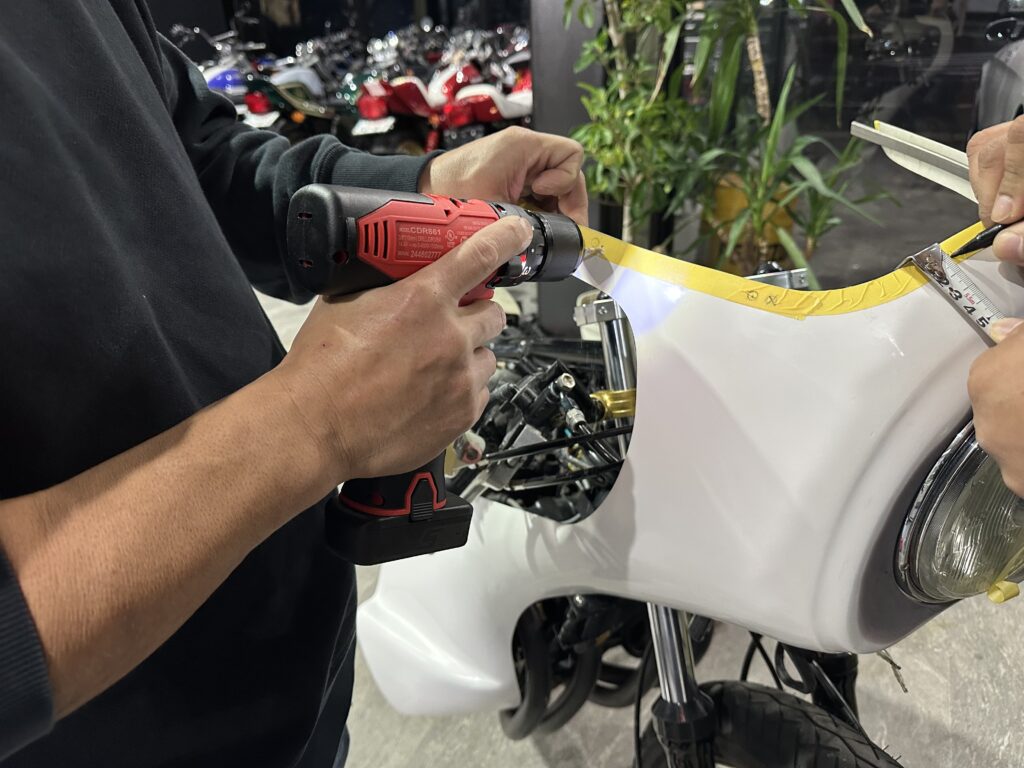 微調整していい感じの場所まで来たのでついにカウルとステーに穴開けていきます‼︎