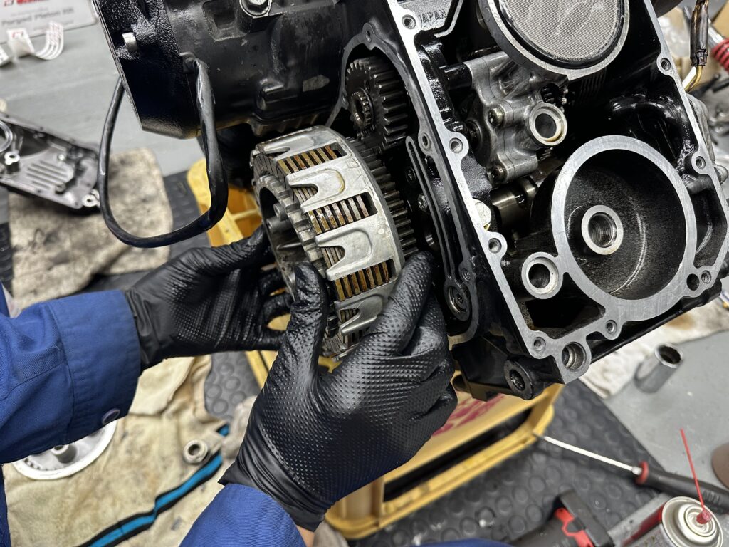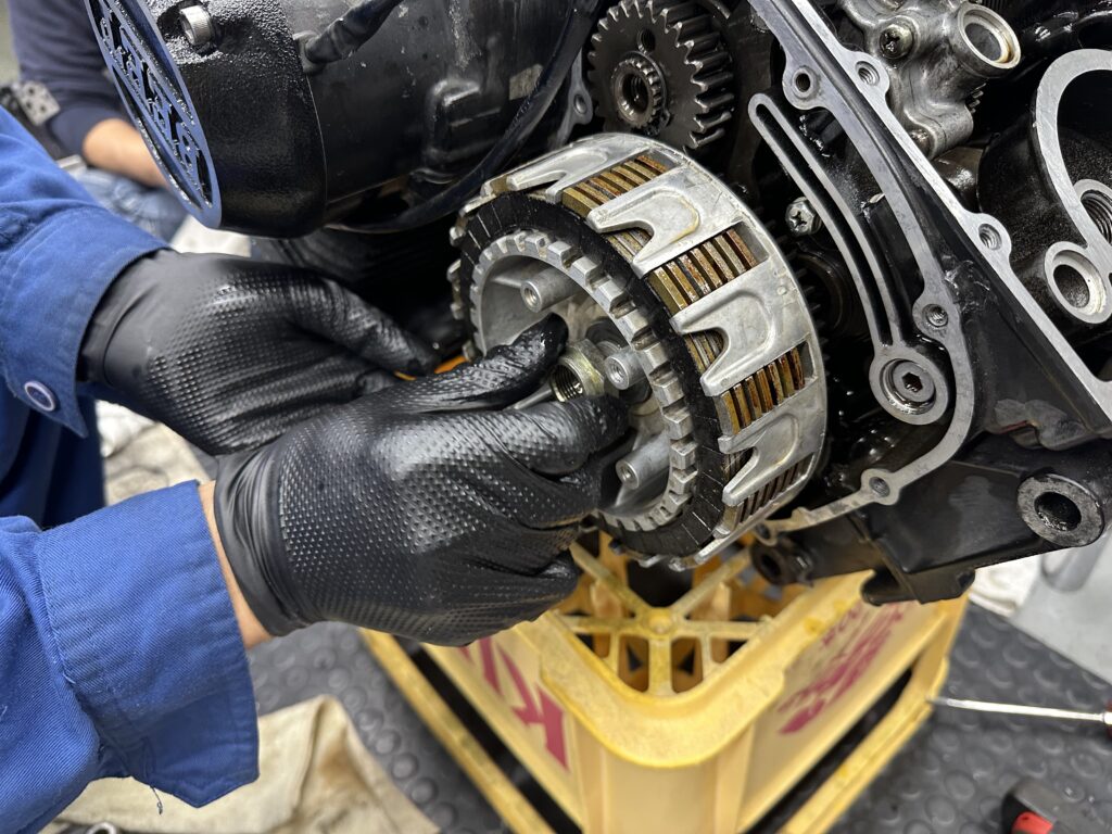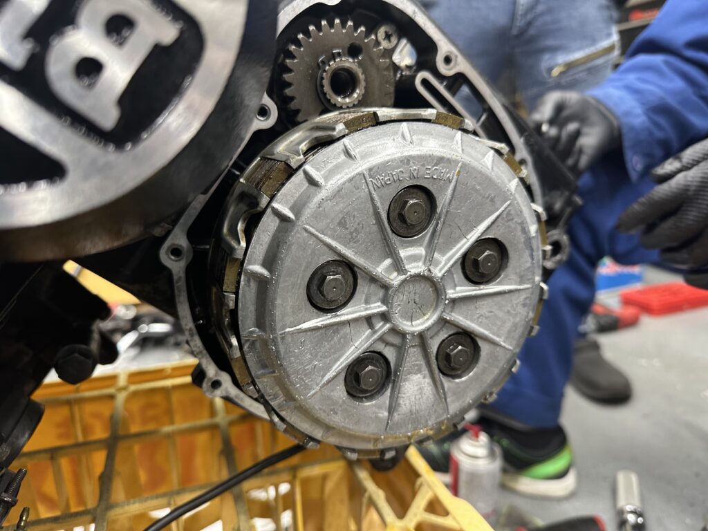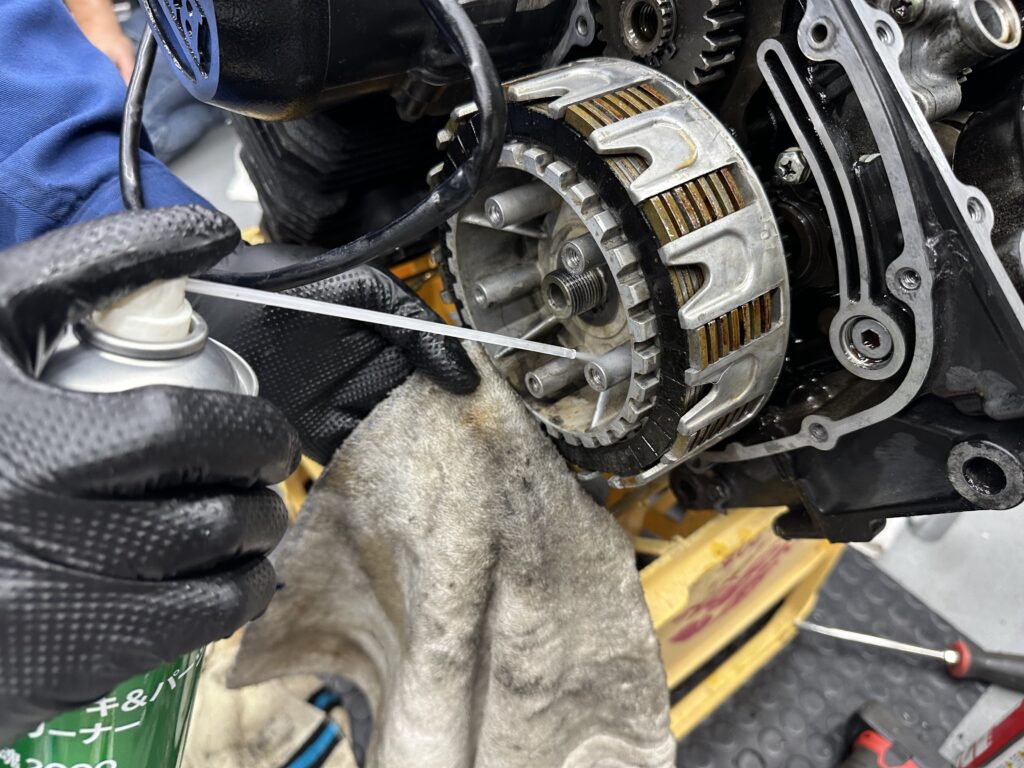クラッチを入れてついでに掃除をしながら組んでいきます!