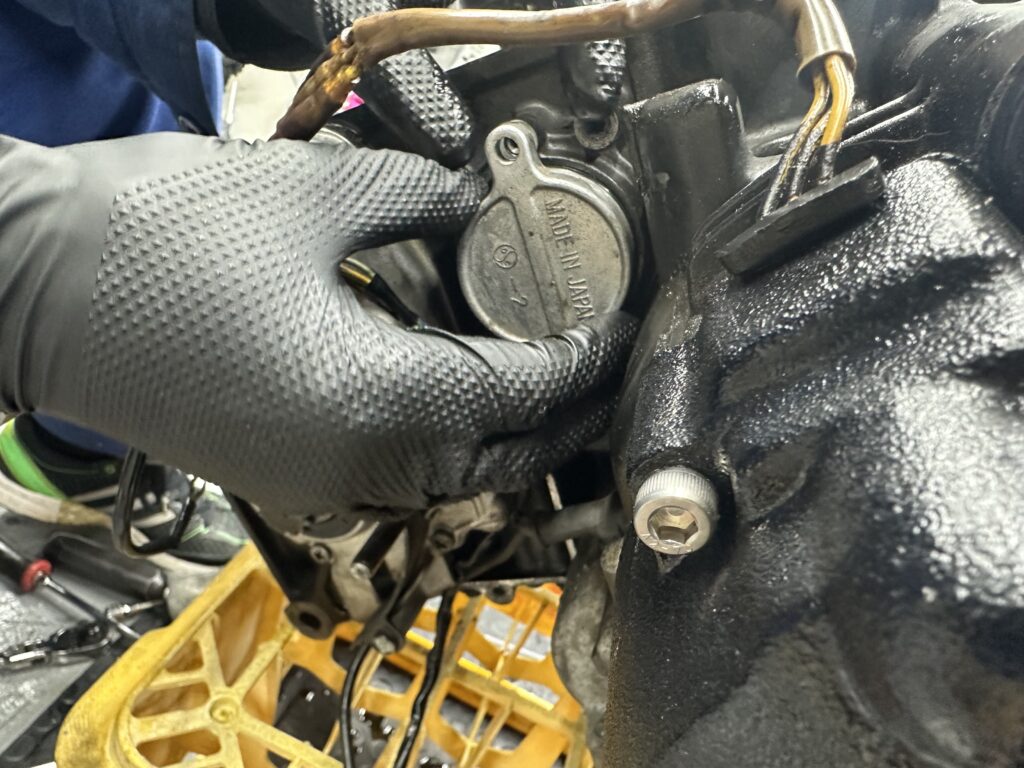 シャフトを刺しオイルポンプと共締めでボルトを締めます。