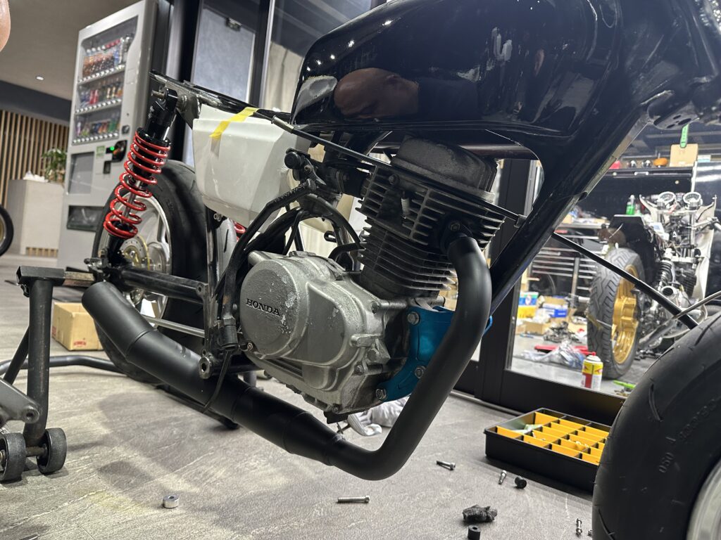 スイングアームはFXの純正スイングアームを幅を詰めました!