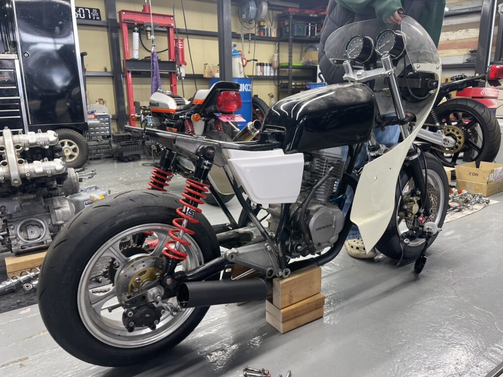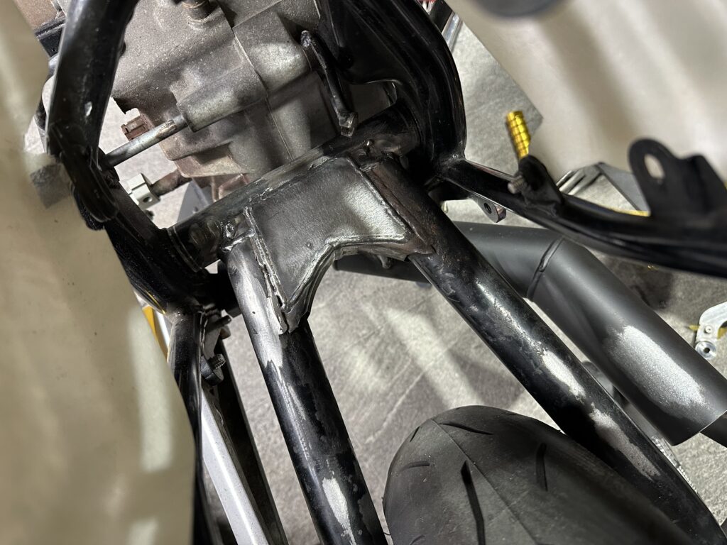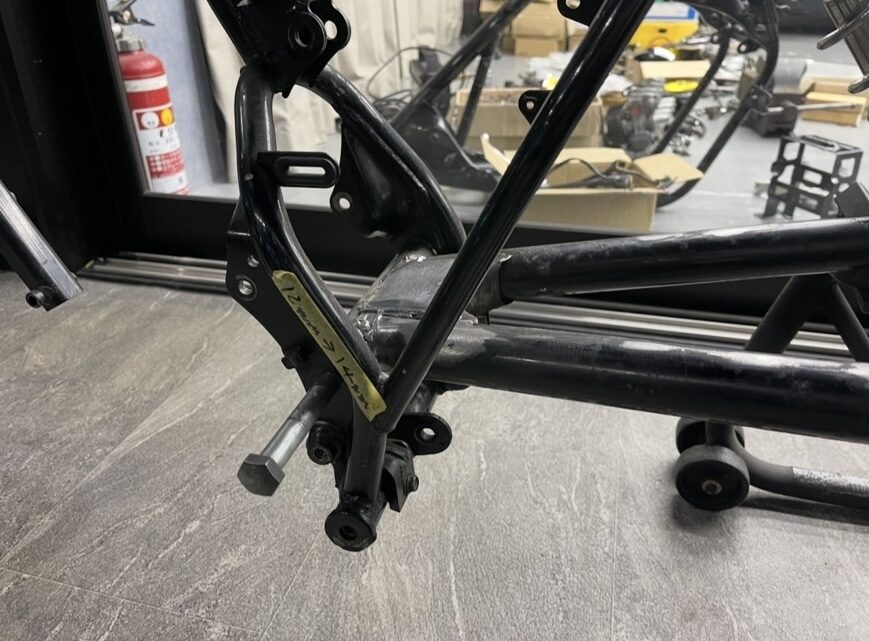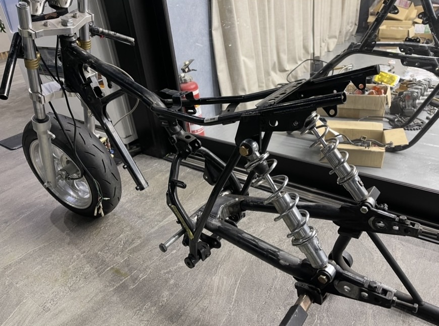スイングアームはFXの純正スイングアームを幅を詰めました!