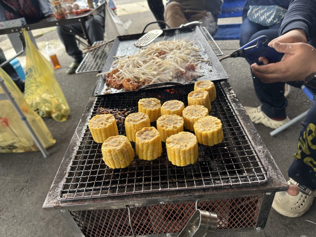 他にもとうもろこしやエリンギなど野菜も焼いて、焼きそばも‼︎